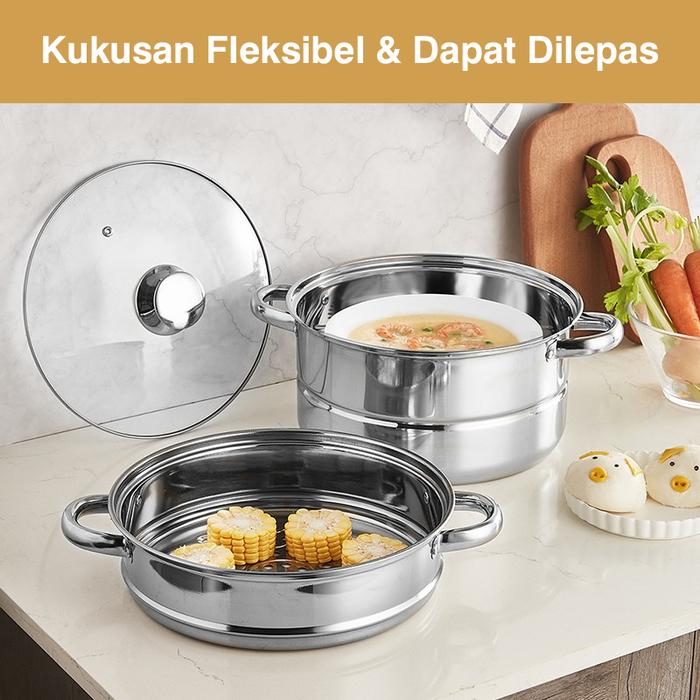 QME- Panci Steamer Kukus Stainlees 2 Susun / PANCI STEAMER STAINLESS STEEL 26cm Kitchenware