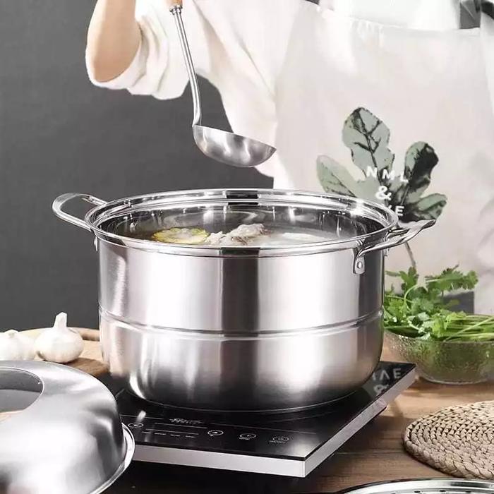 Alaska ASP28 Panci Kukus 1 Set Susun Stainless Steel 3T Diameter 28cm dengan Tutup Kaca & Gagang