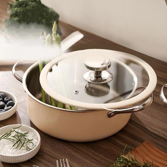 99KHOME Cooking Pan Steamer Set Stainless Steel / Panci Kukus Besi Set Anti Lengket Cream H648