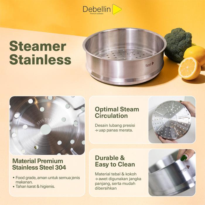 Debellin Kukusan 28cm / Steamer 28cm Kukusan Stainless Steel 304 Anti Karat Multifungsi Food Grade
