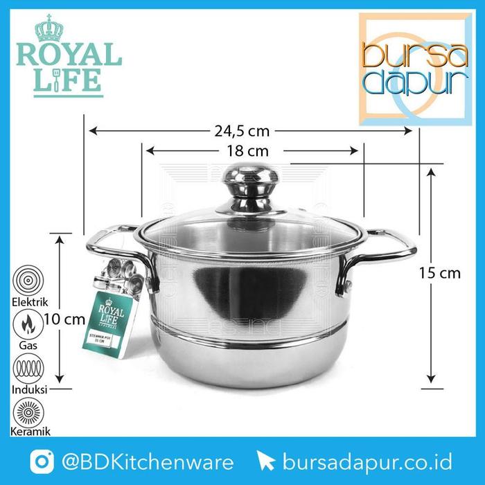 Royal Life Stainless Langseng / Steamer Pot Mini / Kukusan Mini 16 cm