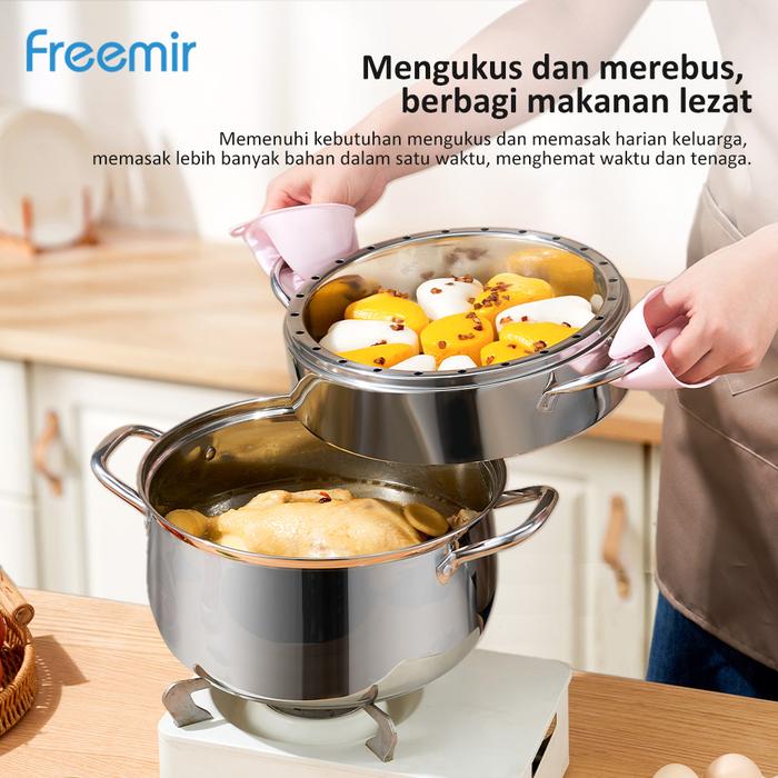 NEW freemir Panci Kukus Stainless 26 cm Penanak Nasi Lebih Cepat Anti Lengket Multifungsi