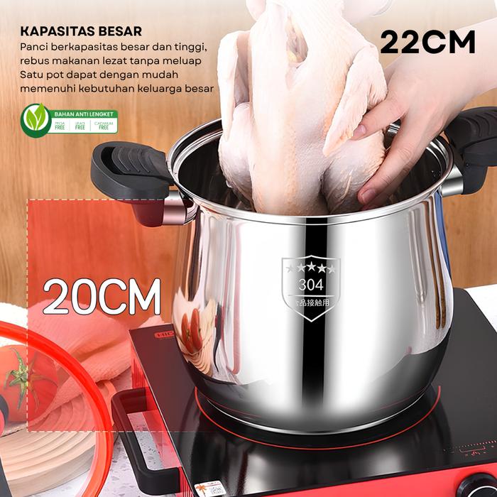 Funnycook Panci Kukus Presti 22cm Stainless Steel SUS 304 Dengan Gagang Anti Panas dan Tutup Kaca