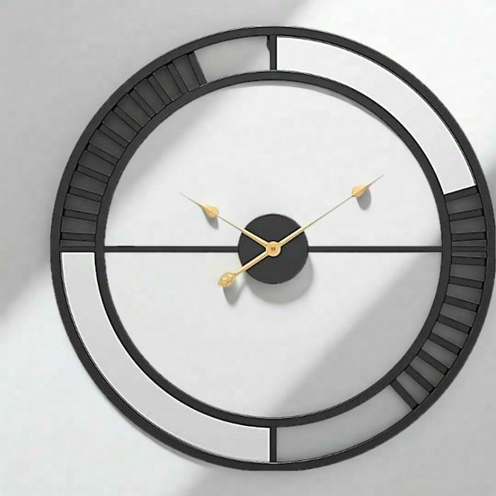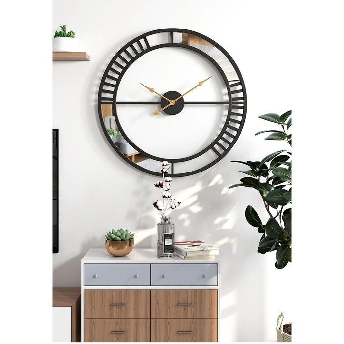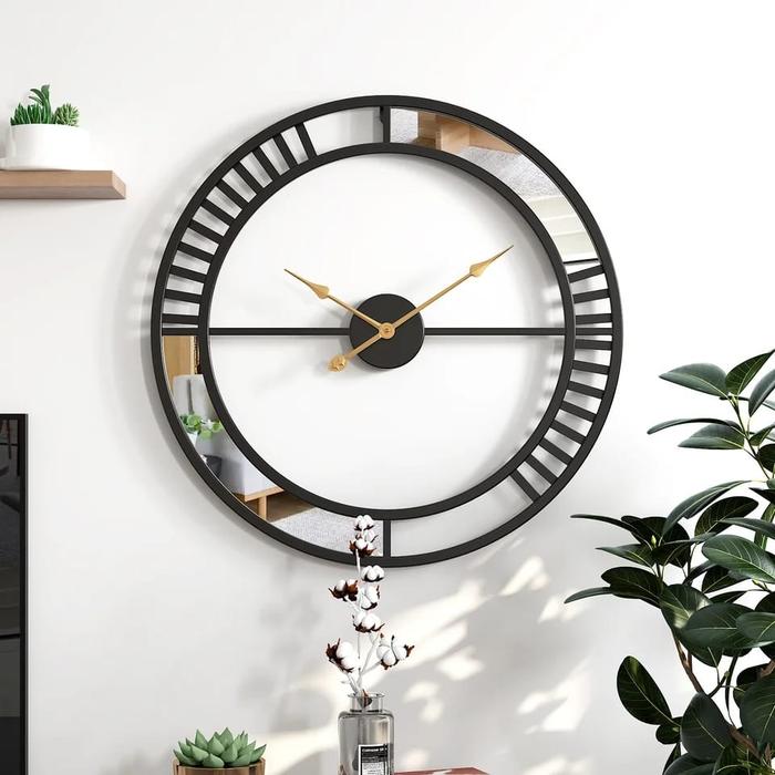 Jam Dinding Jam Dinding Minimalis Besi Tempa Hitam 52 CM dengan Baterai Karbon AA