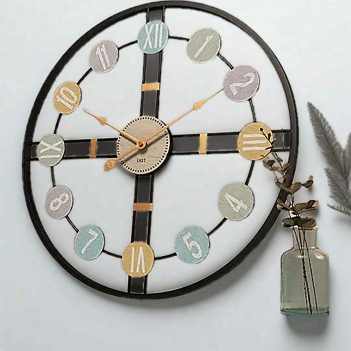 Jam Dinding 50 CM Jam Dinding Retro Nordic Logam Angka Romawi