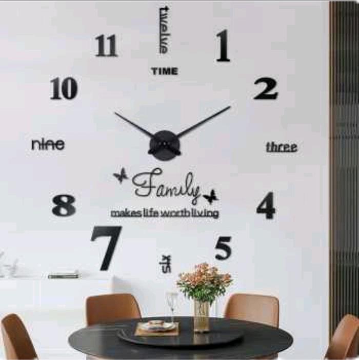 Jam Dinding Taffhome jam dinding jumbo family black diameter 80-130 cm silent movement acrylic