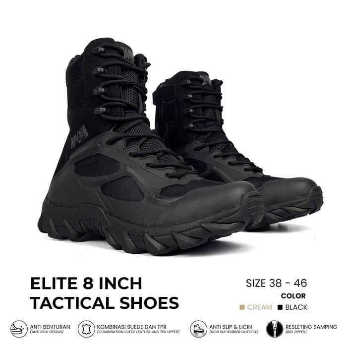 Sepatu Safety Pria Kerja Sepatu Tactical Elite 566 PDL 8 Inch Gurun Hitam Outdoor