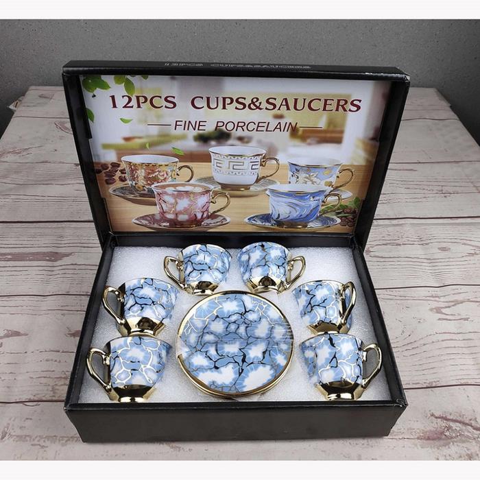 PERLENGKAPAN CANGKIR KERAMIK SET 6 IN 1 EUROPEAN STYLE UNTUK KOPI DAN TEH - Biru