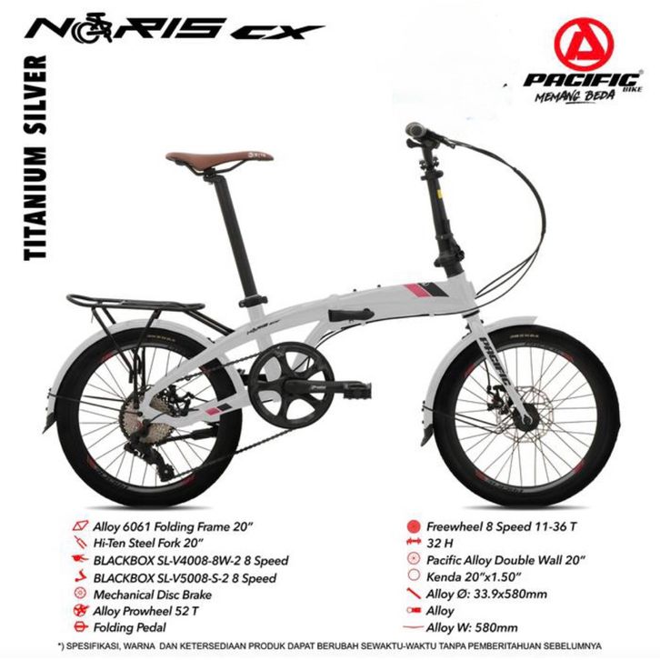 Sepeda Lipat Folding 20 Pacific Noris CX Alumunium Alloy 8 Sp BDG