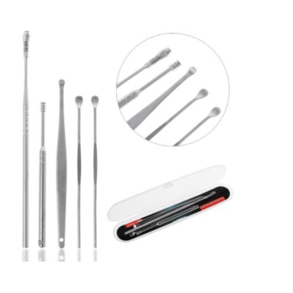 Set Alat Pembersih Telinga Stainless 5 Pcs / Ear Wax Picker 5 in 1 Perawatan Pembersih Telinga Set isi 5Pcs