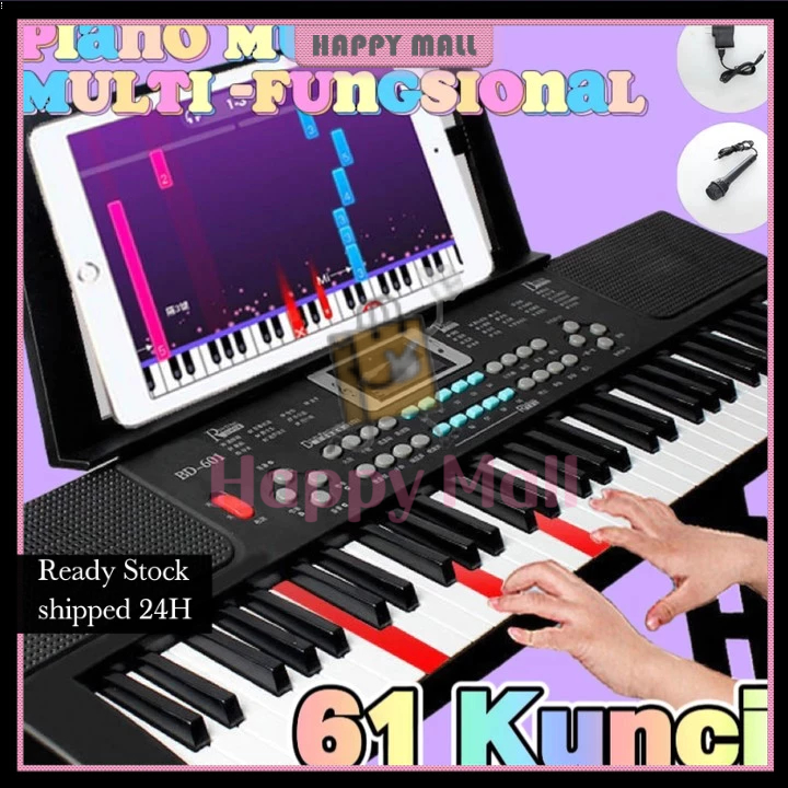 【LOWEST-PRICE】61 Keys Electric Piano / Dengan Mikrofon dan Adaptor Electronic Learnin