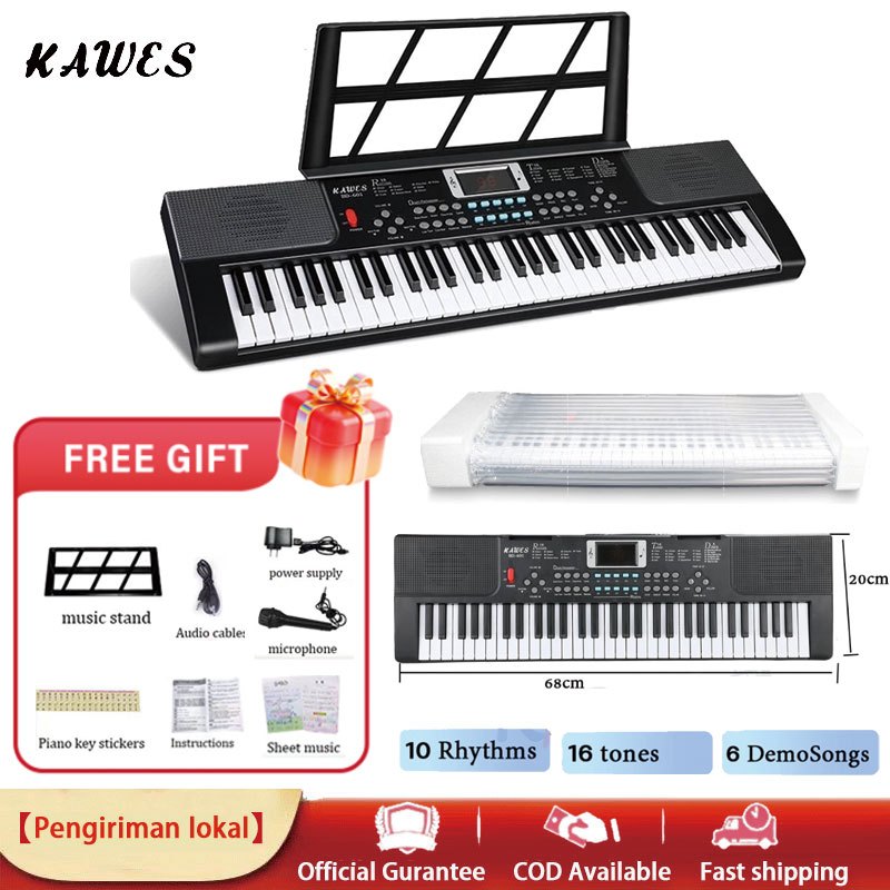 KAWES 61 Keys Electric Piano Dengan Mikrofon dan Adaptor Electronic Learning Keyboard