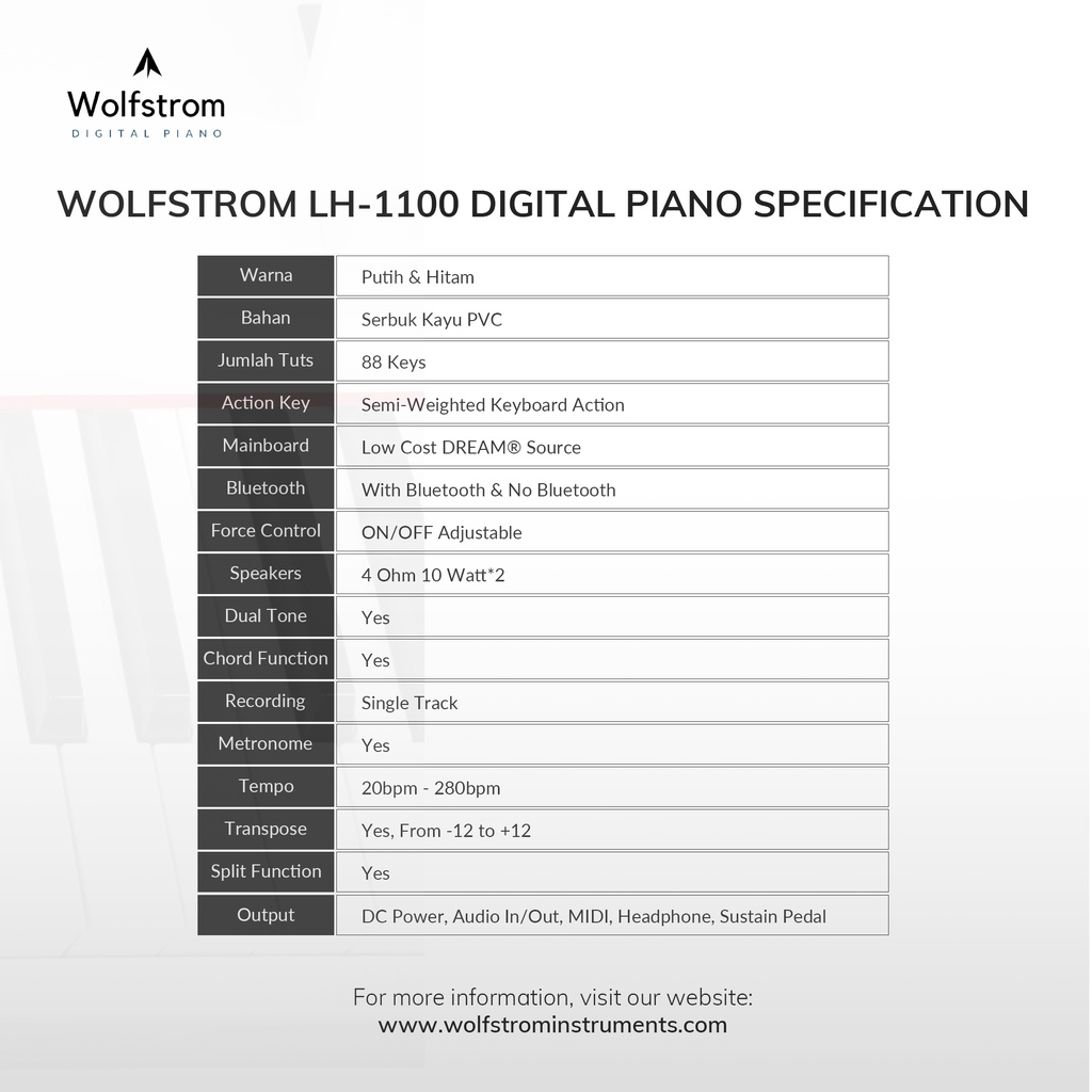 Wolfstrom TH-1700 Bluetooth Digital Piano Keyboard Elektrik 88 Keys