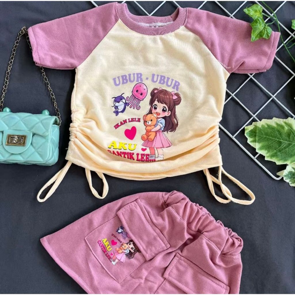 SETELAN PEREMPUAN LENGAN PENDEK DAN ROK MINI MOTIF UBUR LELE KEKINIAN DAN TERBARU USIA 1-10 TAHUN