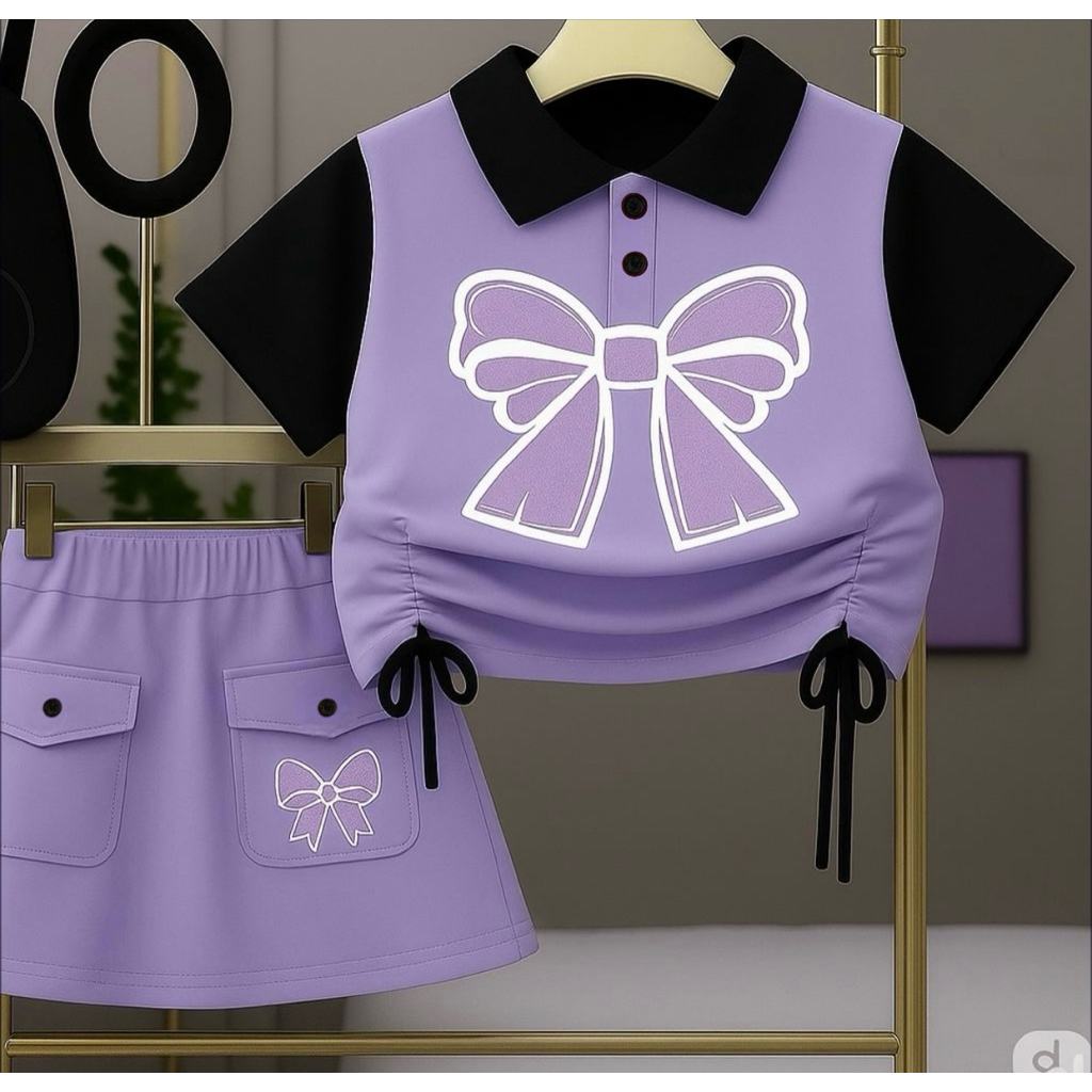 SETELAN ANAK PEREMPUAN MOTIF PITA SERUT DAN ROK MINI USIA 6bln-10 TAHUN TERBARU DAN KEKINIAN