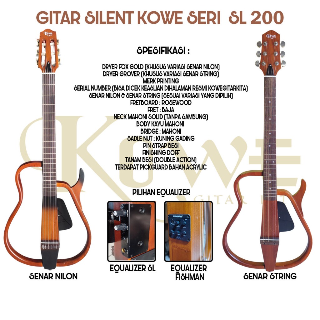 Gitar Silent Original Kowe Akustik Elektrik Seri SL - 200