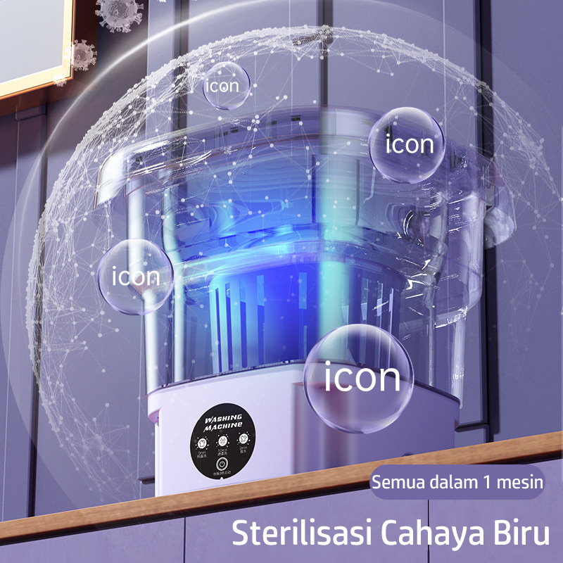 Keeone Mesin Cuci Mini Portable 2 Tabung 8L Mesin Cuci Lipat Otomatis Mesin Pengering Pakaian Sterilisasi Cahaya Biru
