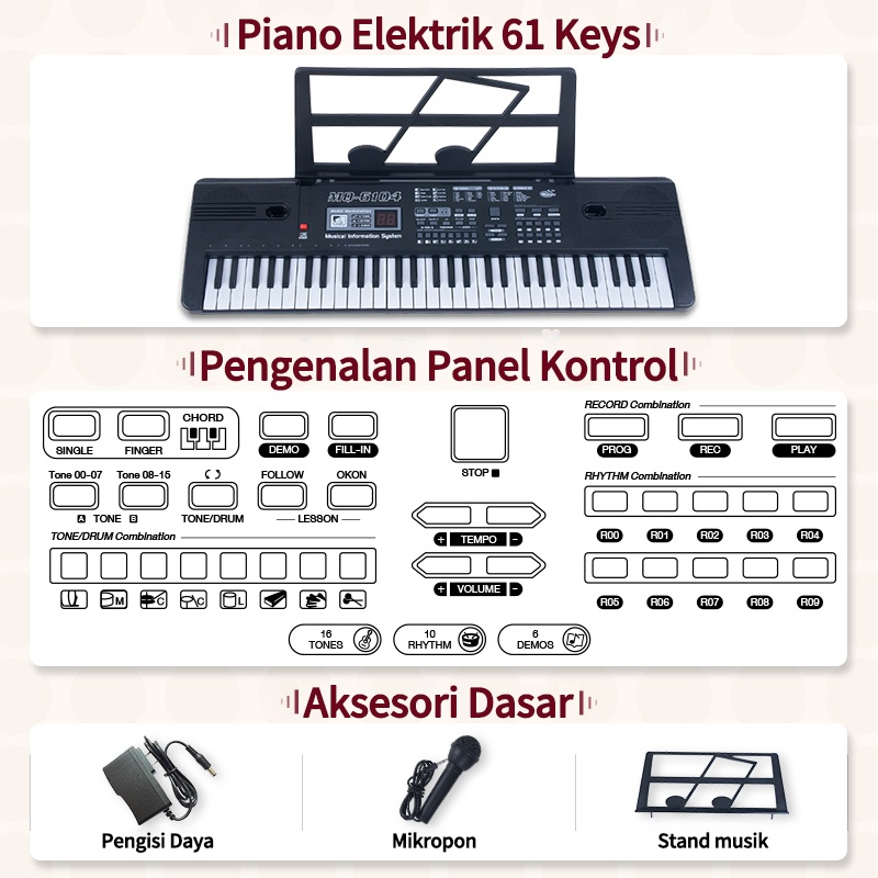 Multifungsi organ elektronik 61 Keys / 3-6-12 tahun piano profesional keyboard kecil