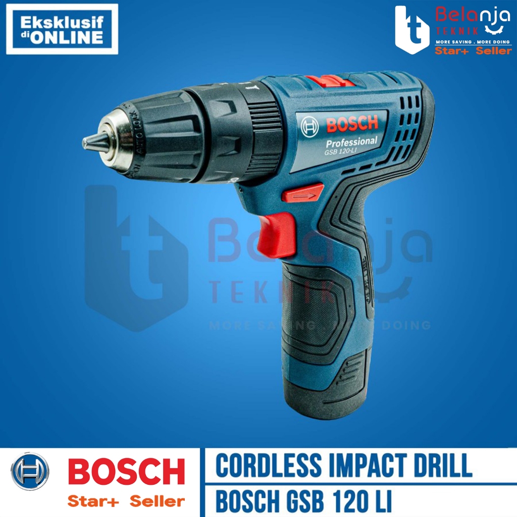 Bosch Bor Baterai Tembok Cordless GSB 120-LI GEN 3 SET 1 Baterai 2 AH FREE Mata Bor Obeng