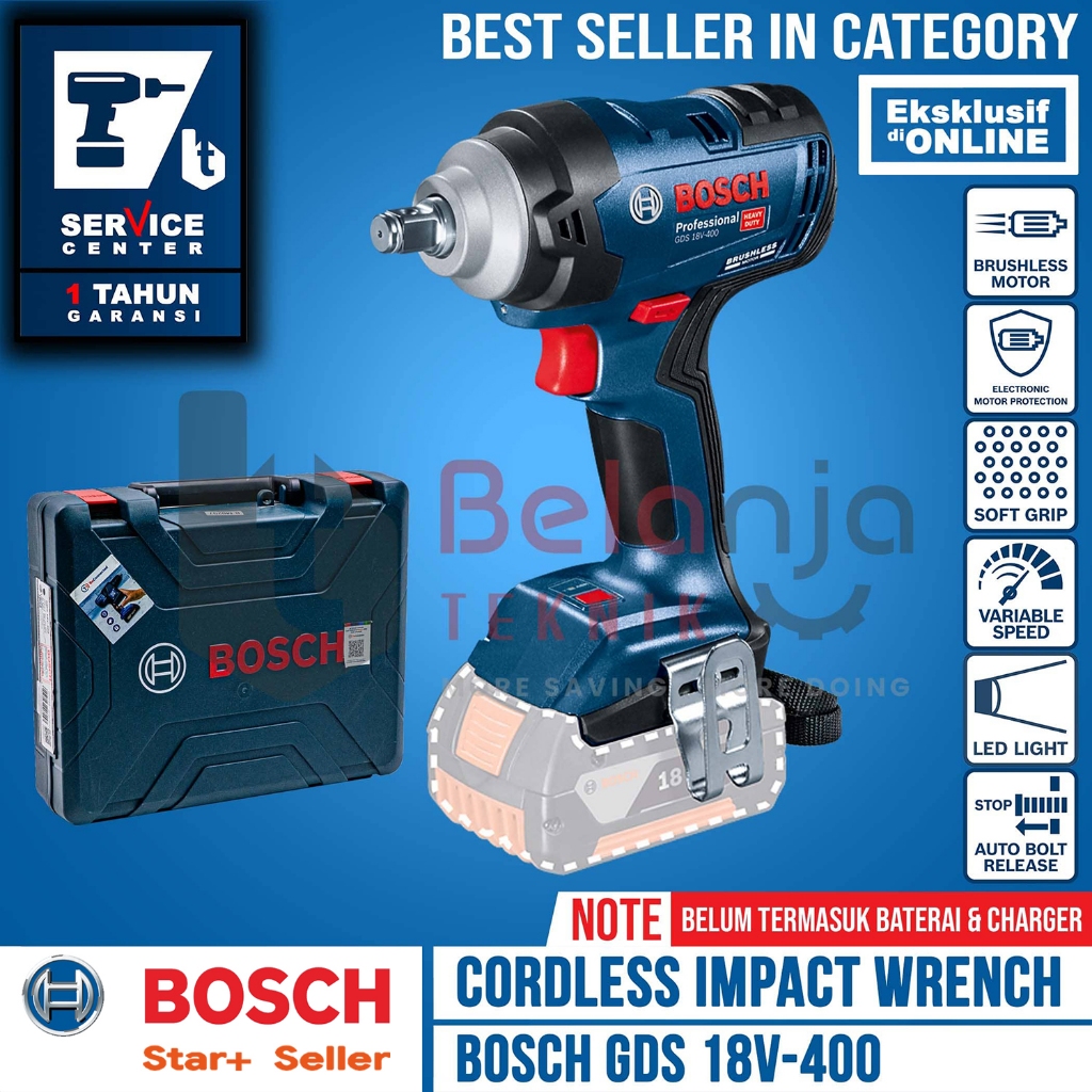 Bosch Impact Wrench Cordless GDS 18V-400 Pembuka Baut Baterai 18 V