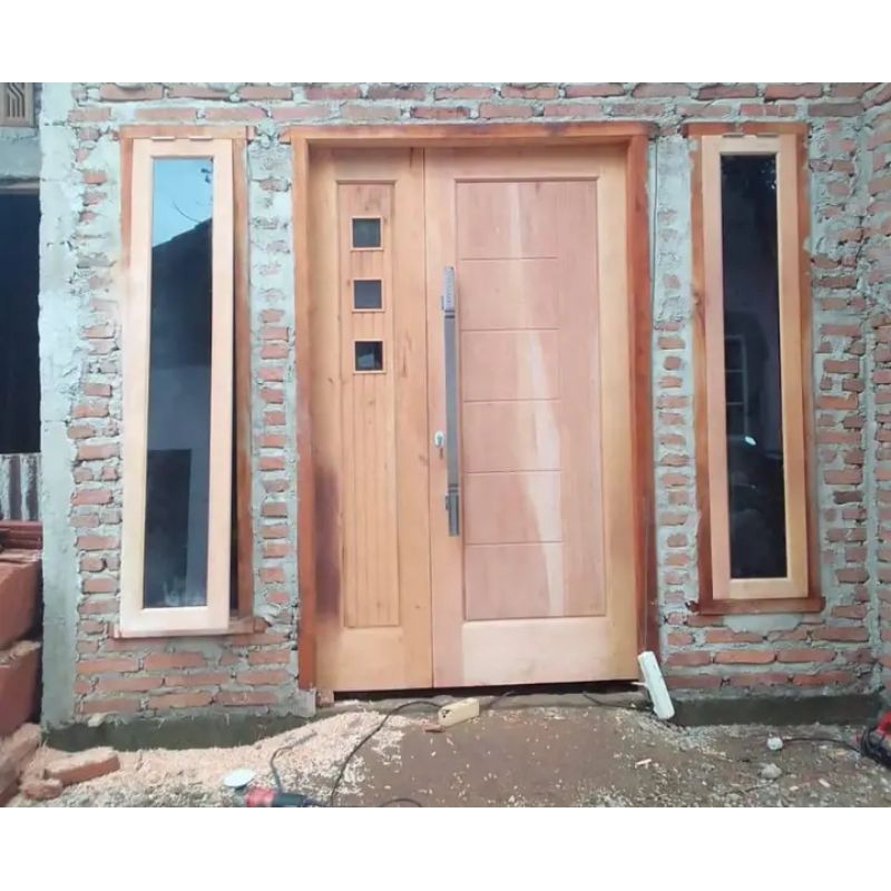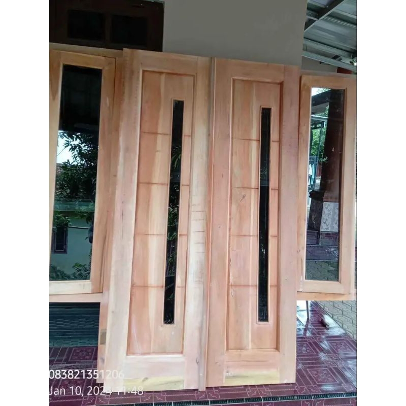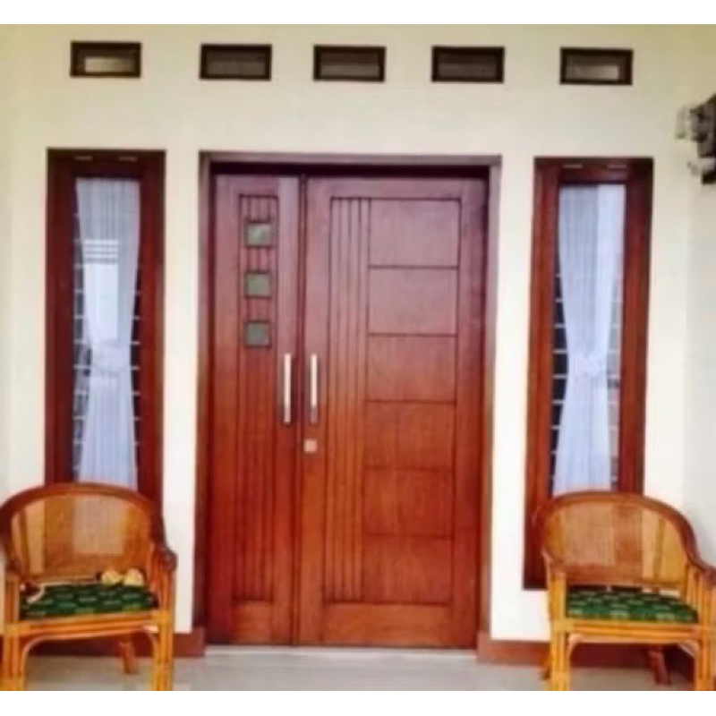 Ready stok 1 set pintu & kusen dan 2 jendela kayu mahoni