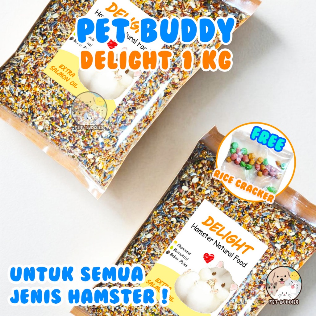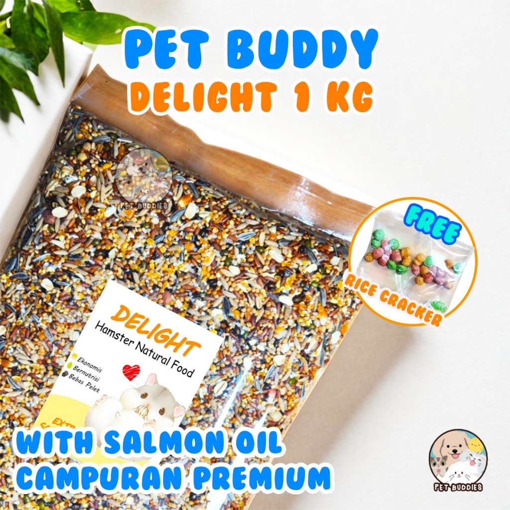Delight 500g EXTRA Salmon Oil FREE RICE CRKER Makanan Pokok Hamster Lengkap TANPA PELET