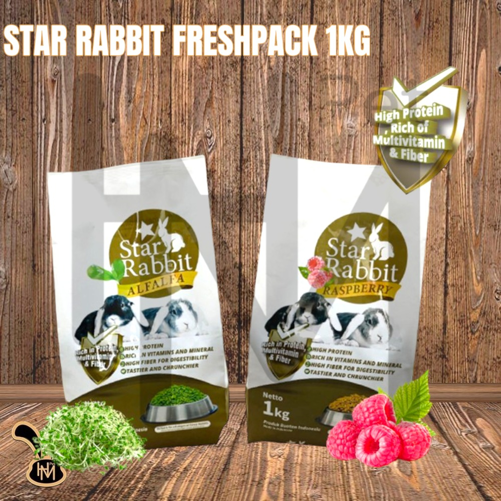 Star Rabbit Freshpk 1 KG Makanan Kelinci Premium | Pakan Kelinci Star Rabbit Alfalfa/Raspberry 1KG
