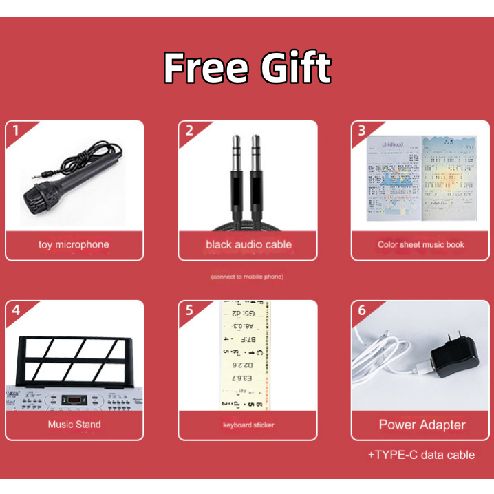 【 】Lampu Mengikuti 61 Keys Electric Piano / Dengan Mikrofon dan Adaptor Electronic Le