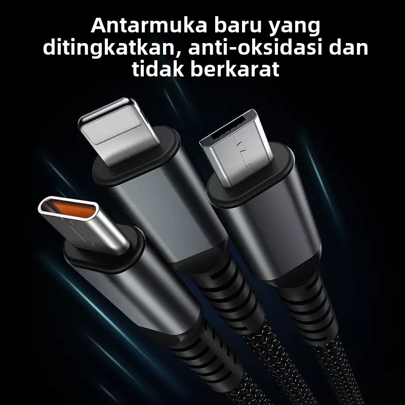 3IN1 Super Fast Charging 100W Kabel Data usb To Type C Lightning Micro with Digital Display