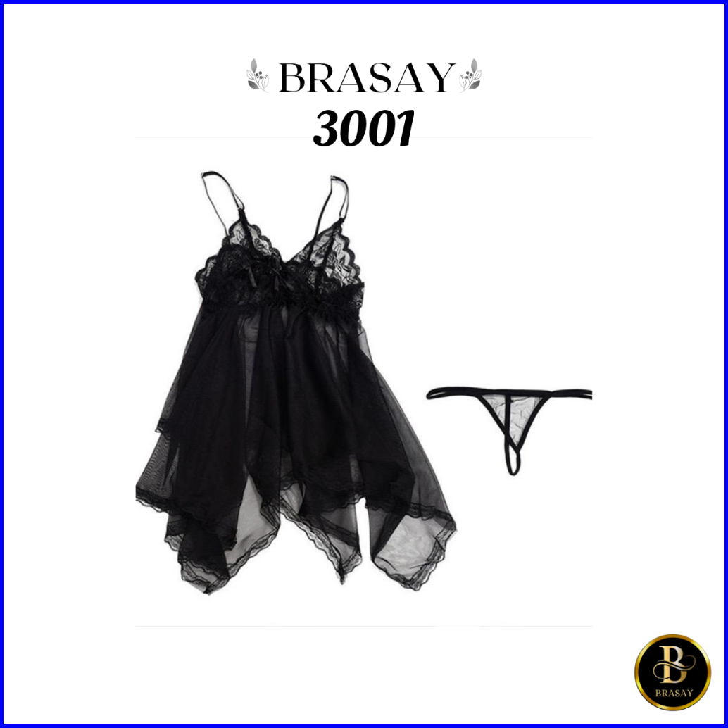 Brasay Set Lingerie Wanita Bahan Lace Tipis Kerah Deep-v Neck Tanpa Lengan Baju 3001