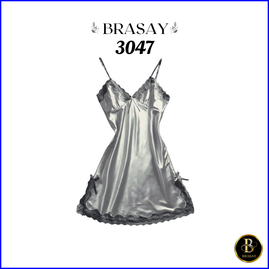 Brasay Lingerie Dress Satin Mini Deep V Silk Baju Tidur 3047