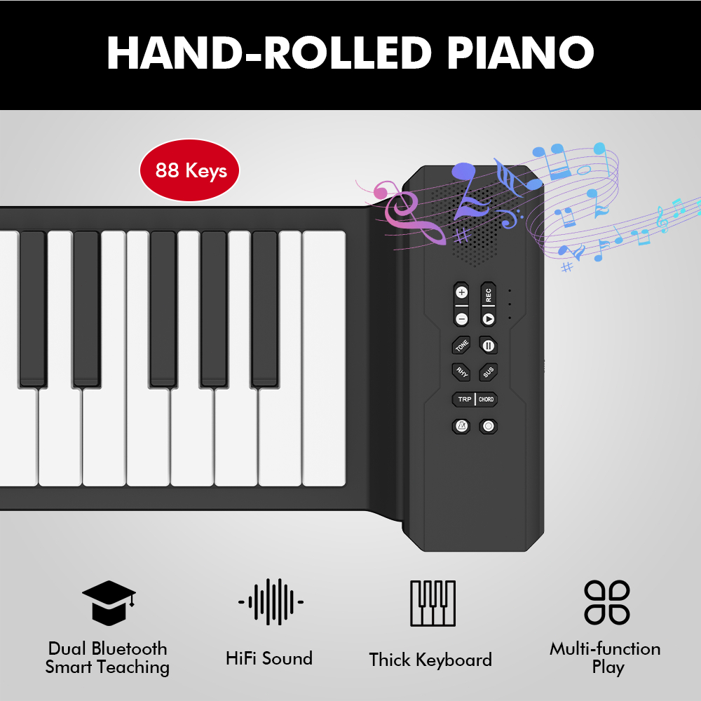 RIXTON Keyboard elektronik portabel 88 tuts piano tangan dengan speaker internal dan