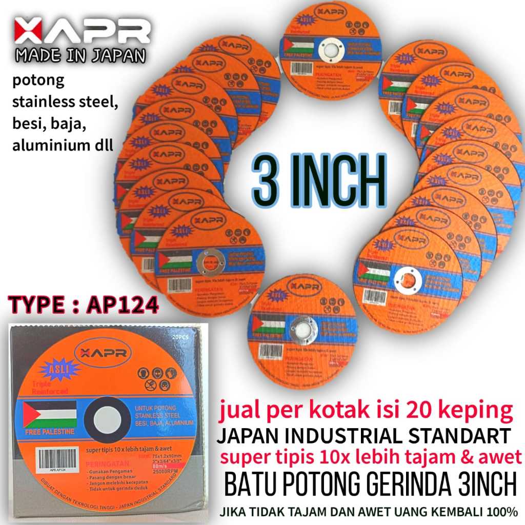MATA POTONG BESI GERINDA 3 inch APR AP124 ISI 20PCS BAHAN stainless baja aluminum WD GARANSI RESMI