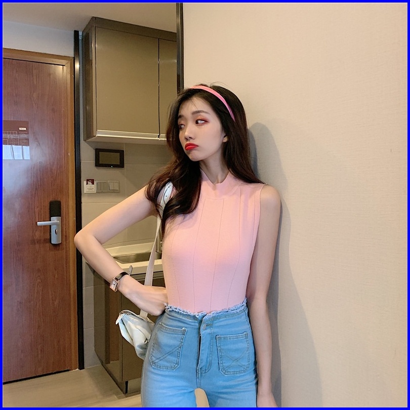 Brasay Turtleneck Wanita Tanktop Rajut Tengtop Tank Top Blouse Korean Lalisa Style 4066