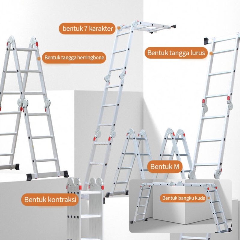 Reaim Tangga Lipat Aluminium 3.8M 4.8M 5.8M Meter Hitam Multifunction Household Ladde
