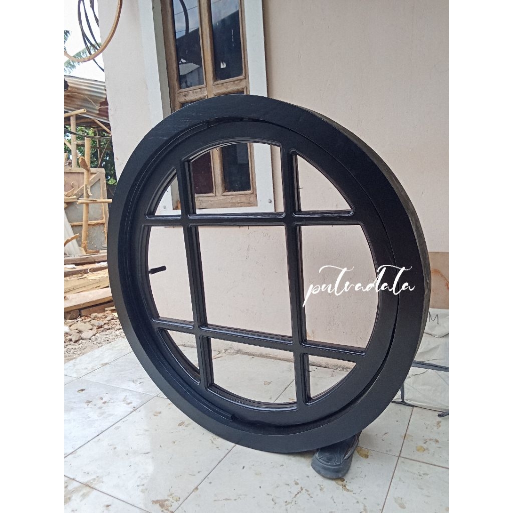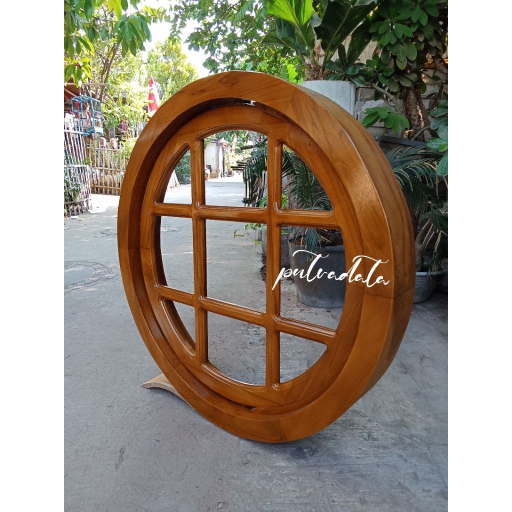 Dekorasi Jendela Rumah Minimalis 100cm | Kusen Bulat Putar Kayu Jati