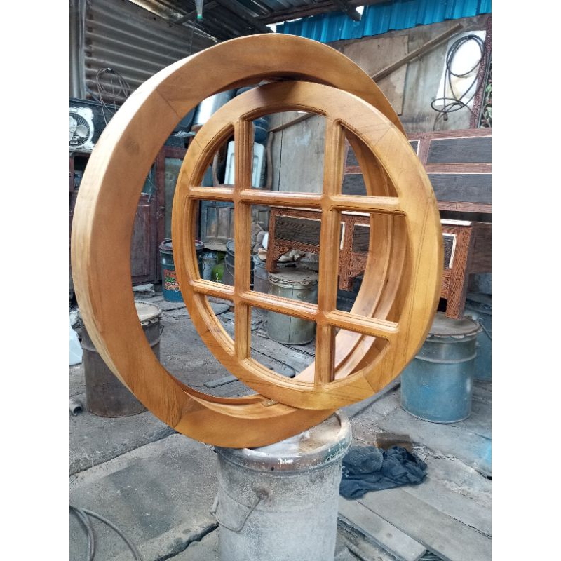 KB4_80 cm Kusen Jendela Bulat Kayu Jati Aesthetic Bisa Diputar / Dibuka