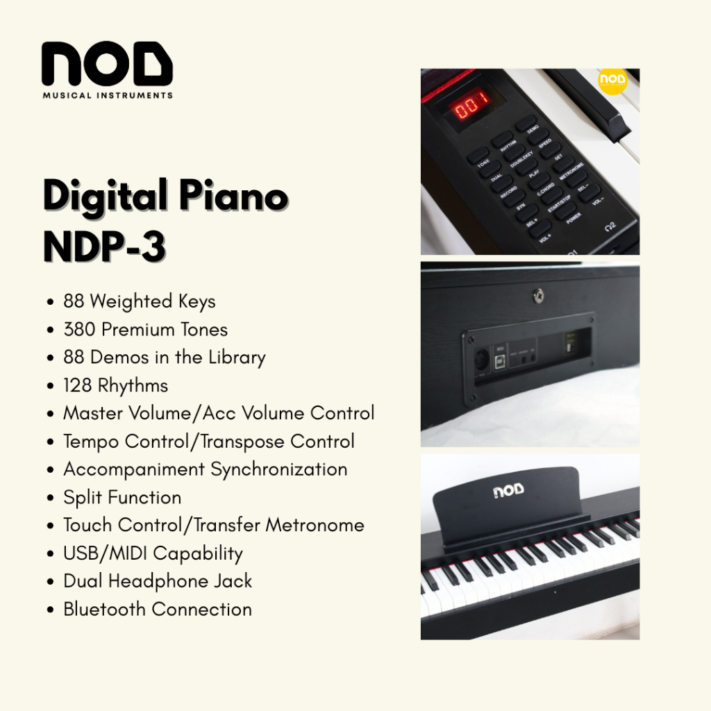 NOD Digital Piano NDP3 88 Weighted Keys (Tuts Berat) untuk Pemula, Anak-anak - White