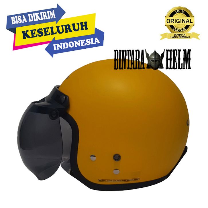 helm cargloss retro CFM solid yellow doff kaca cembung helm original