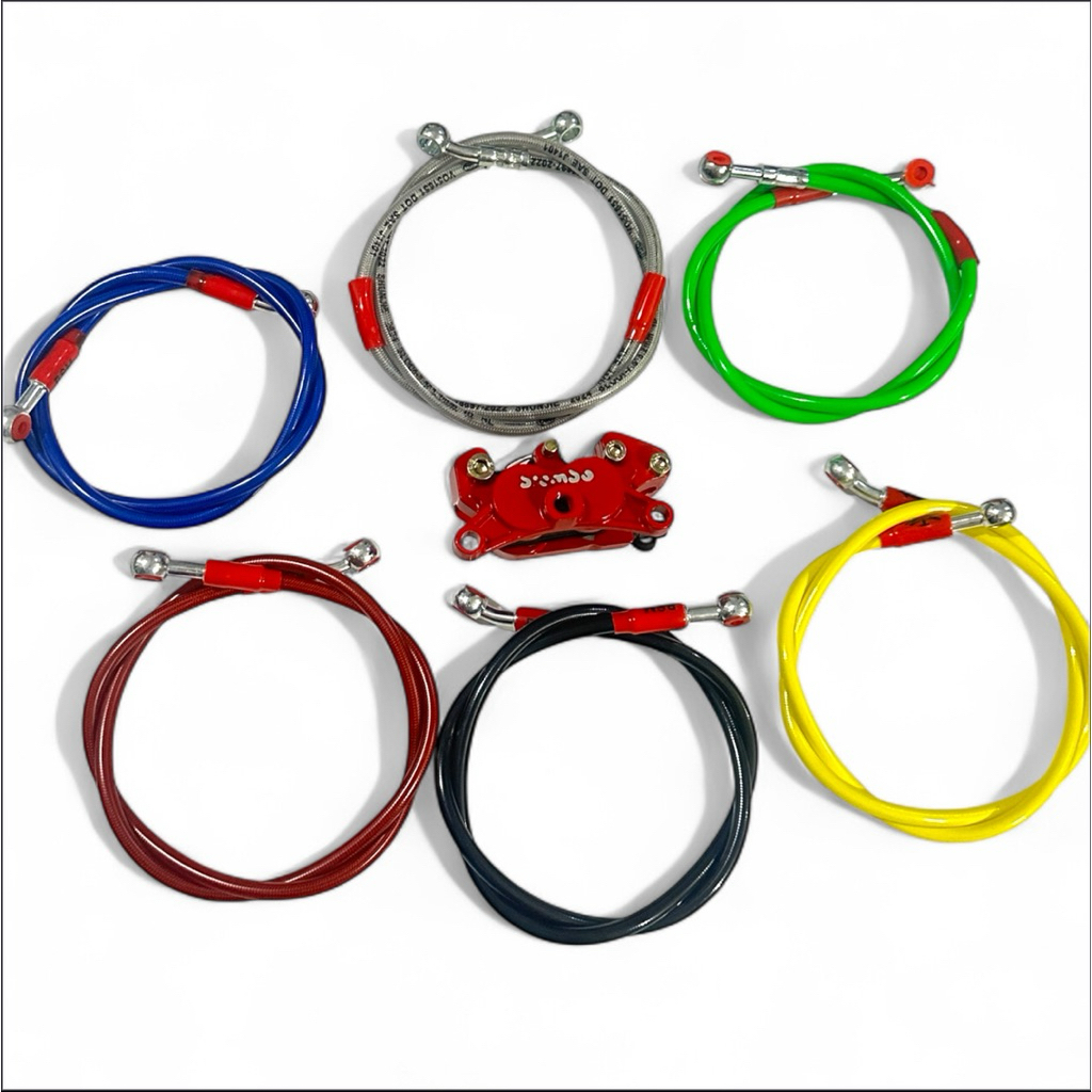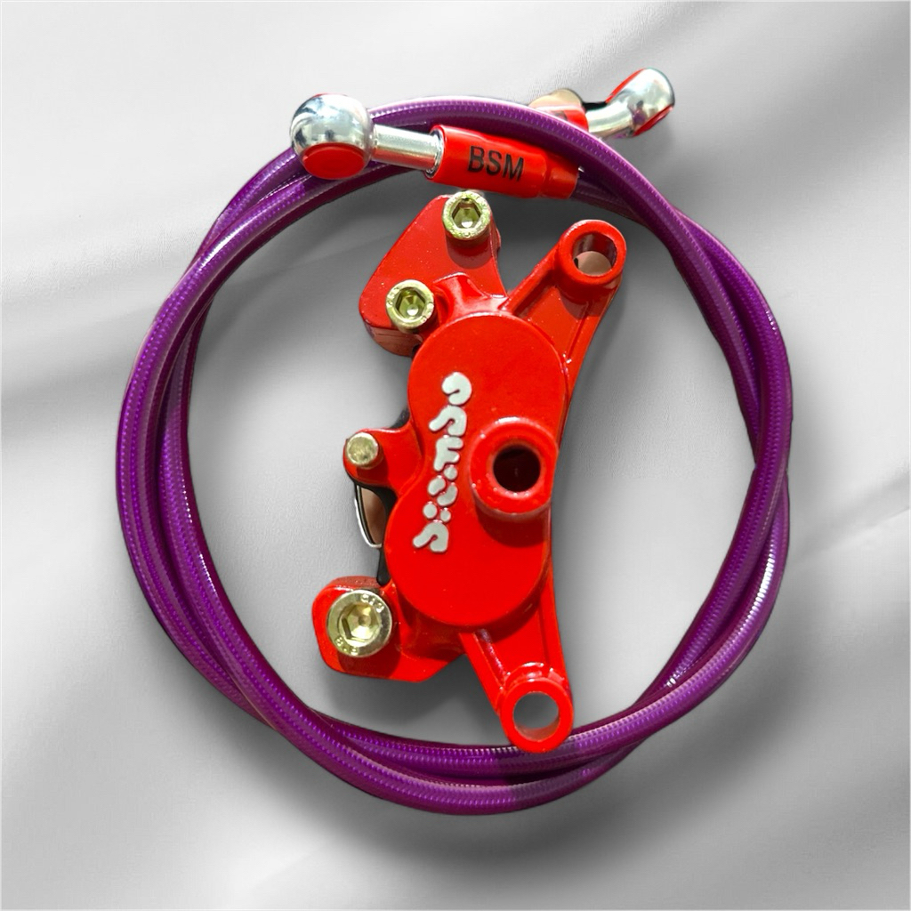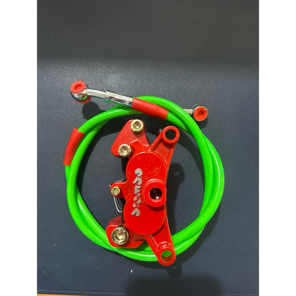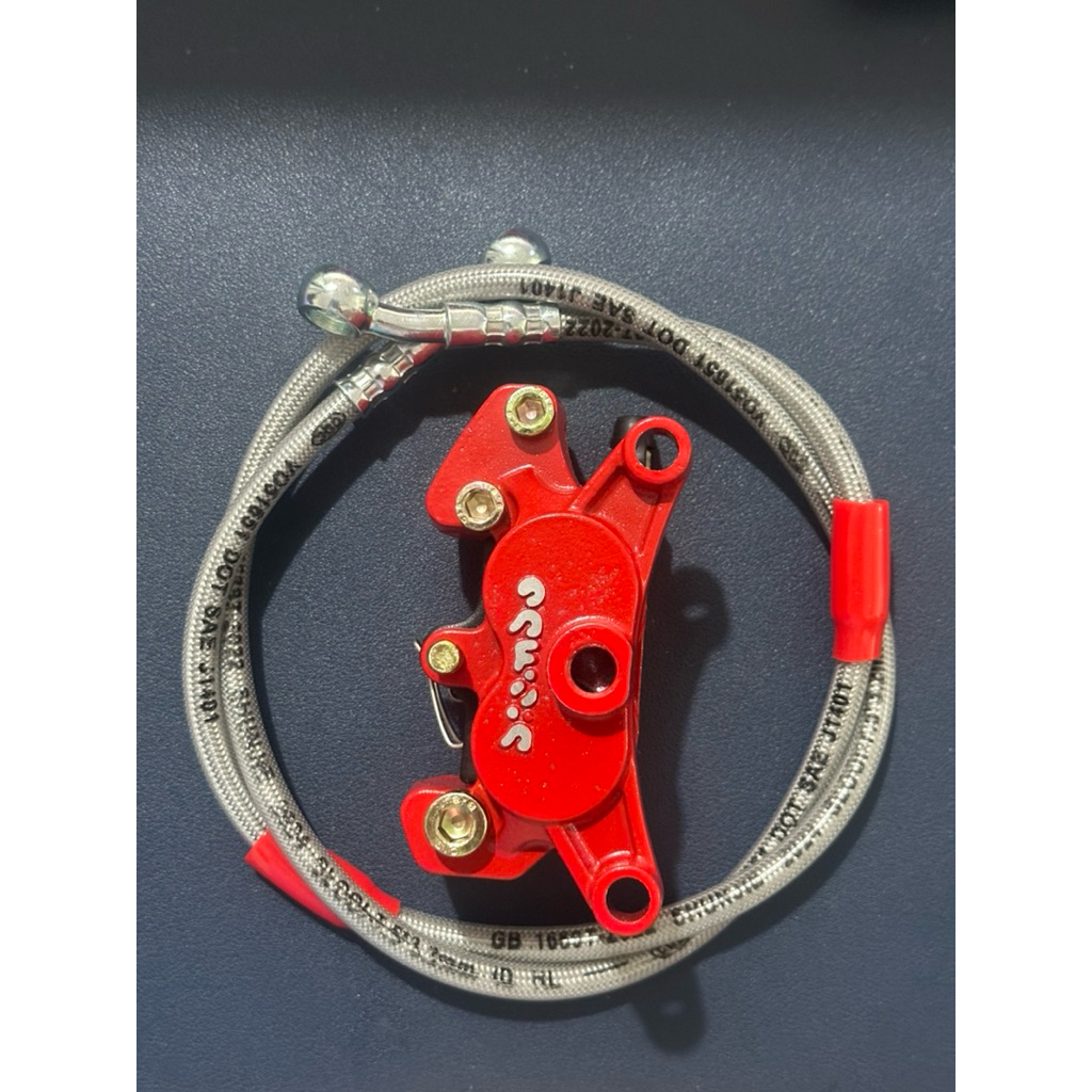 PAKETAN KALIPER BABY BREMB 4PISTON PLUS SELANG REM DEPAN CARBON MODE TDR PANJANG 95CM UNIVERSAL COCOK SEMUA MOTOR