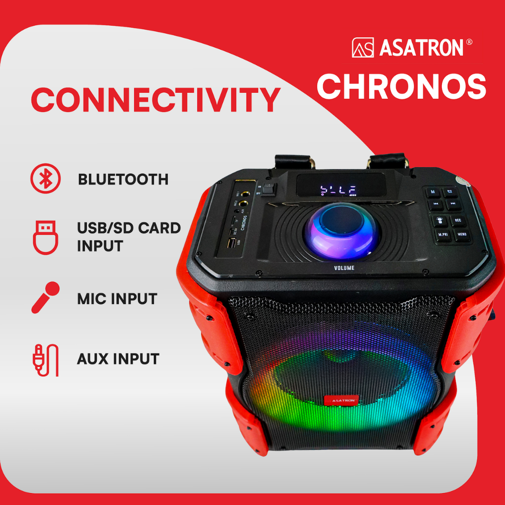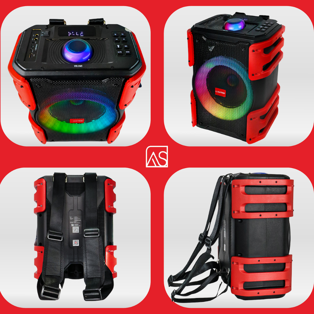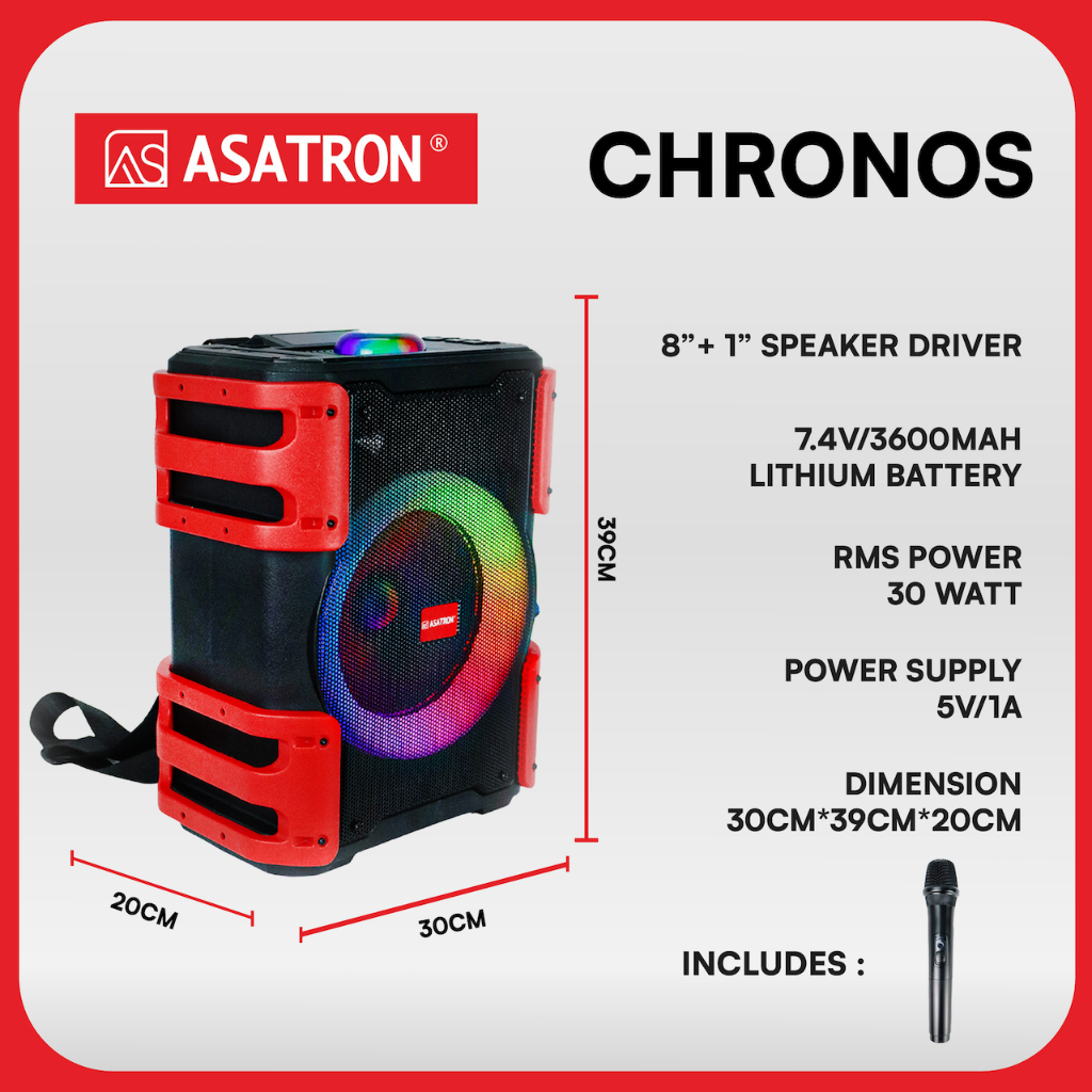 Asatron Chronos 8 Inch Bluetooth Karaoke Party Speaker with 1 Wireless Mic TWS Backpack Strap sound karoke musik box