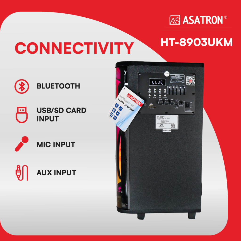 Asatron HT-8903 UKM 10 Inch Bluetooth Karaoke Party Speaker with Wireless Mic TWS