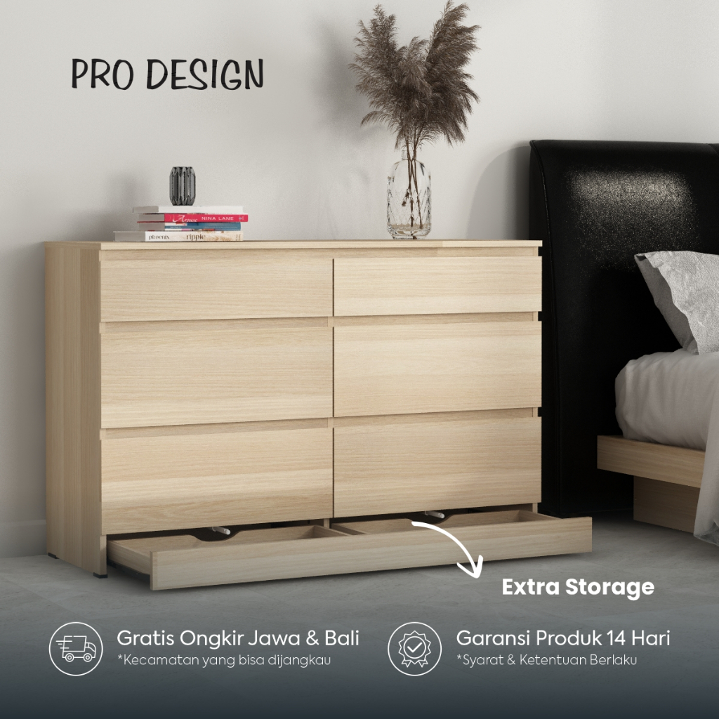 Eleven CD 3+3 Lemari Laci Bufet Kabinet Lemari Penyimpanan Serbaguna Minimalis Bahan Kayu Lemari Samping Tempat Tidur