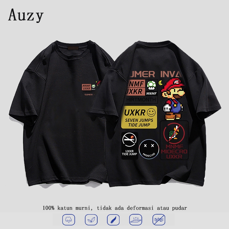 AUZY T-shirt Kartun Super Maria t shirt kaos pria distro original 100 oversize pria