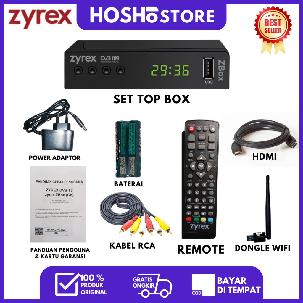 STB TV Digital Tabung Zyrex ZBox-1 DVB-T2 + Antena, Full HD, HDMI, USB, Garansi 1 Tahun