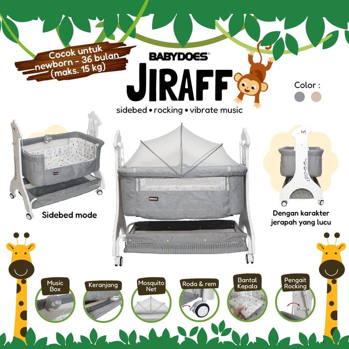 PROMO TERBATAS BOX BABY TEMPAT TIDUR ANAK BAYI BUKA SAMPING BABYDOES 1635 JIRAFF RANJANG BAYI ROCKING SIDE BED KASUR ABUABU HANYA BOX