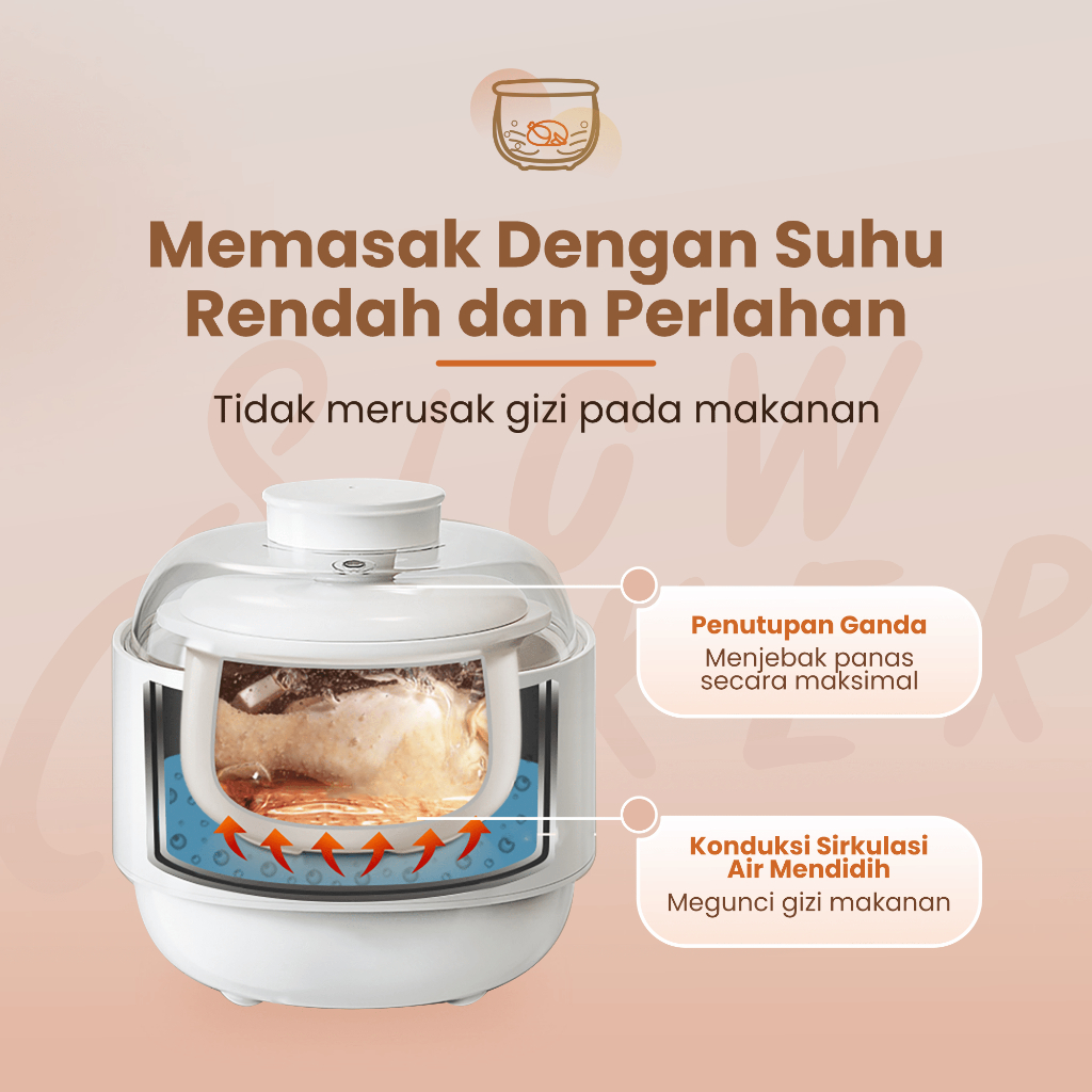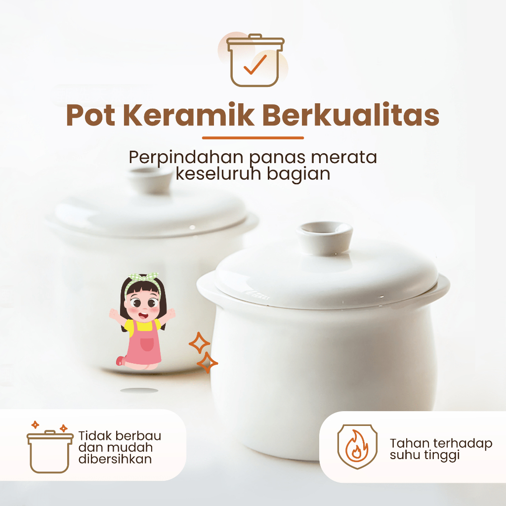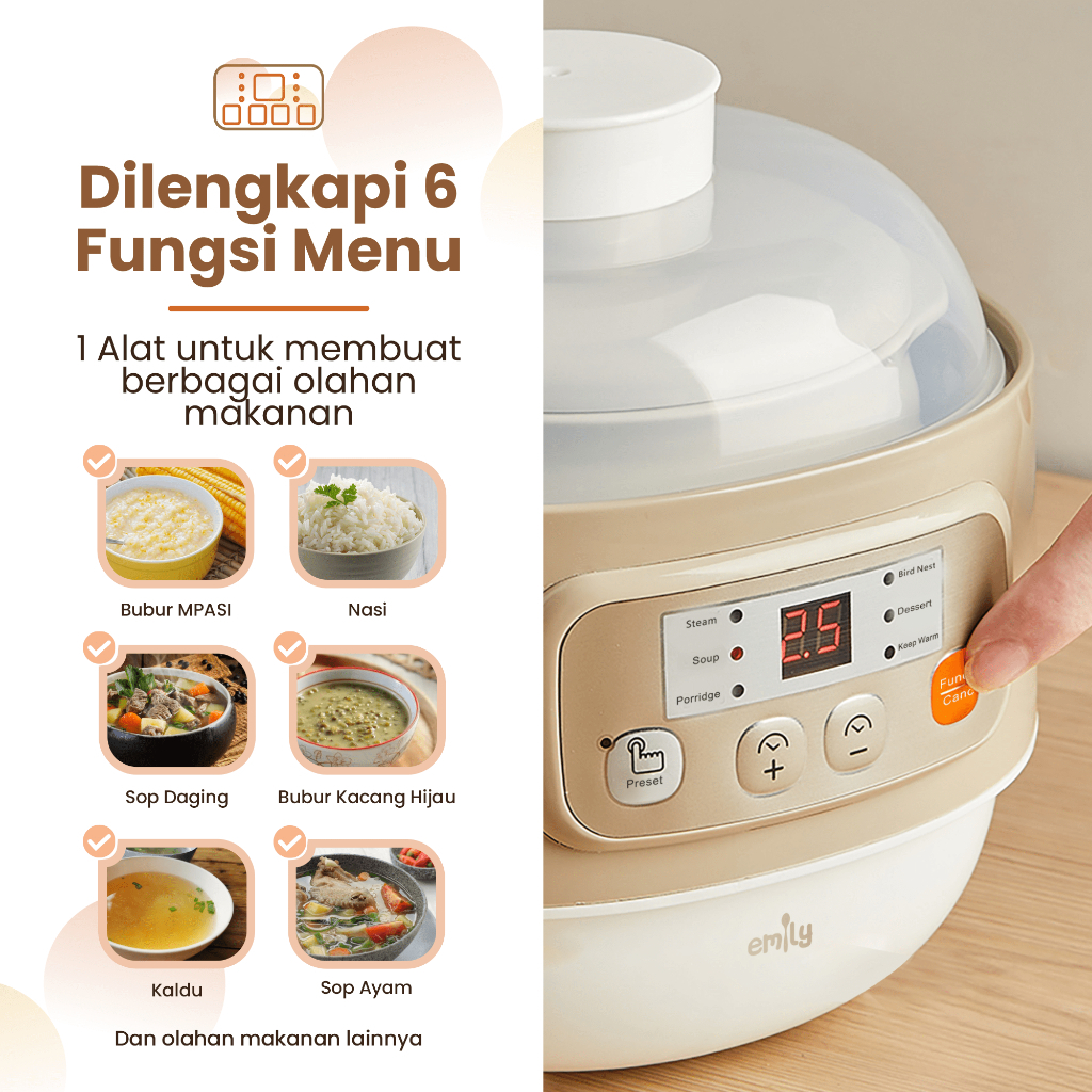 EMILY Slow Cooker + Steamer 0.8L Ceramic | Panci Keramik | Baby & Family Food Maker | MPASI Cooker