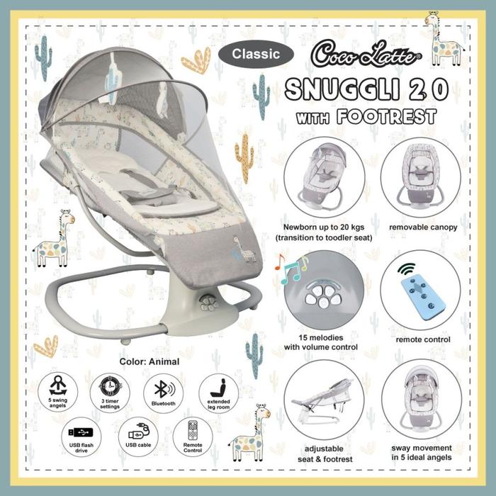 PROMO TERBATAS AYUNAN BAYI BOUNCER ELEKTRIK COCOLATTE SNUGGLI 20 CLASIC BABY SWING OTOMATIS WITH REMOTE CONTROL 6IN1 68 LIGHT HANYA SWING