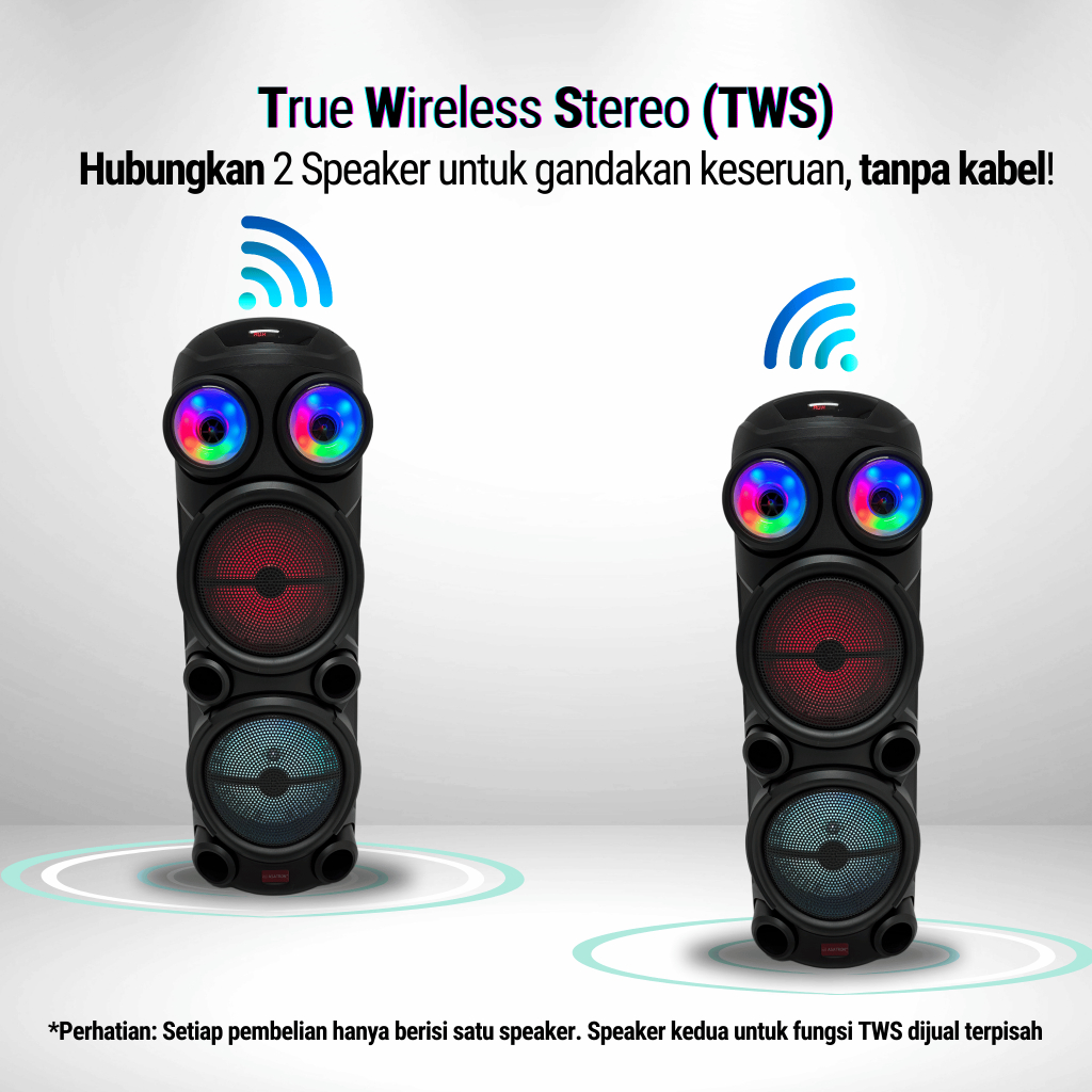 Asatron Beats Dual 8 Inch Bluetooth Party Speaker with 2 Wireless Mic Rechargeable