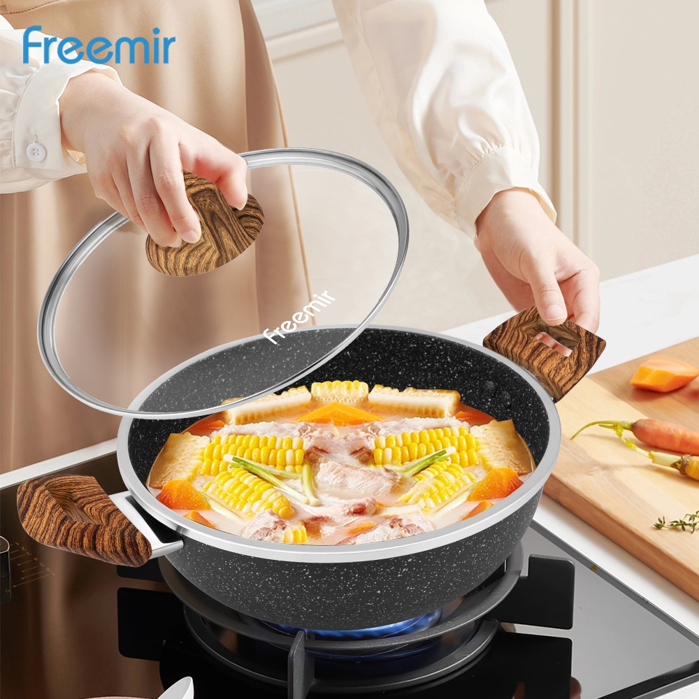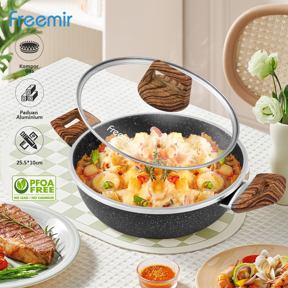 freemir original Wajan Panci 24 Cm Tinggi 10cm Penggorengan Anti Lengket Tutup Kaca Serbaguna